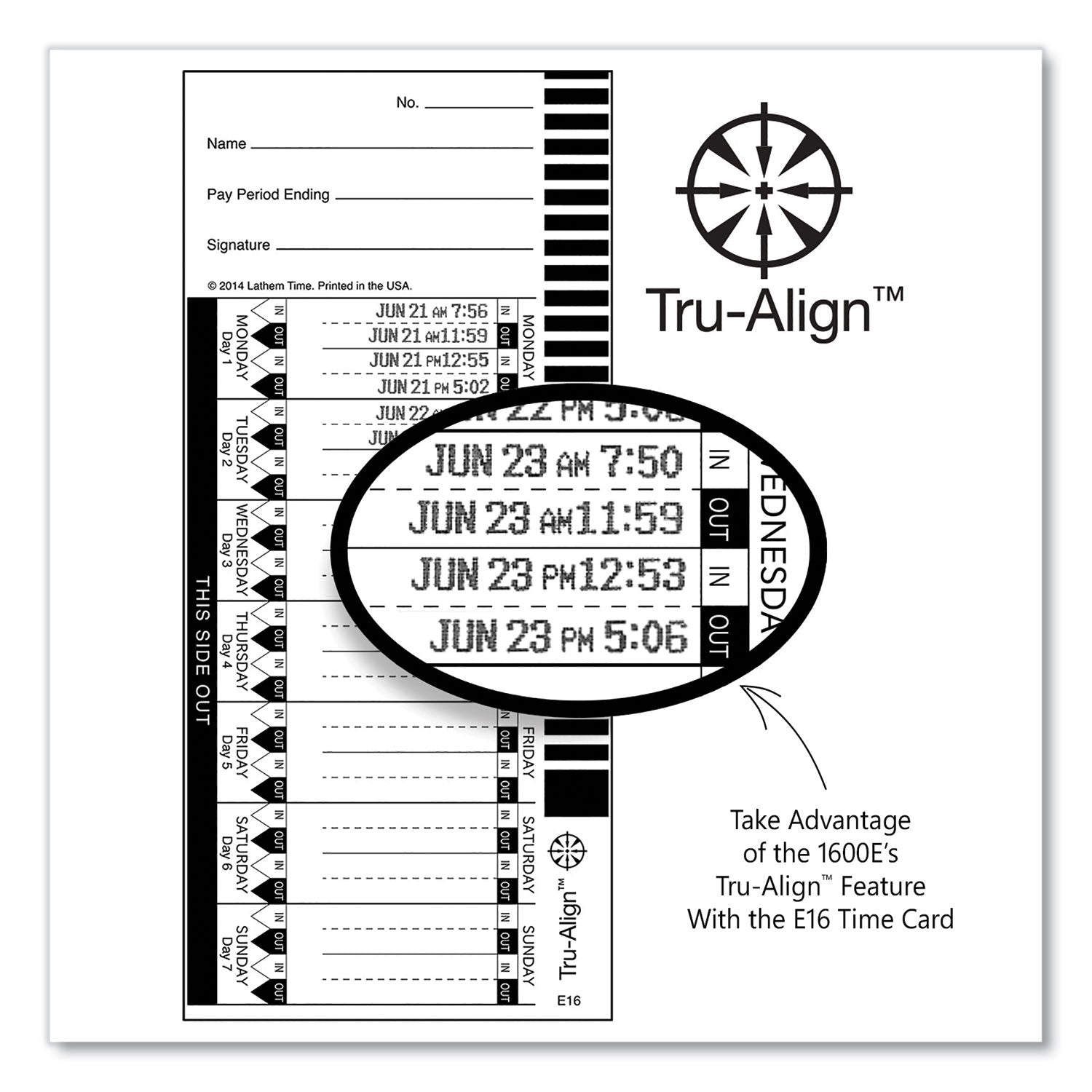 - Optional Tru-Align™ feature for a perfectly aligned punch on E16 Time Cards.