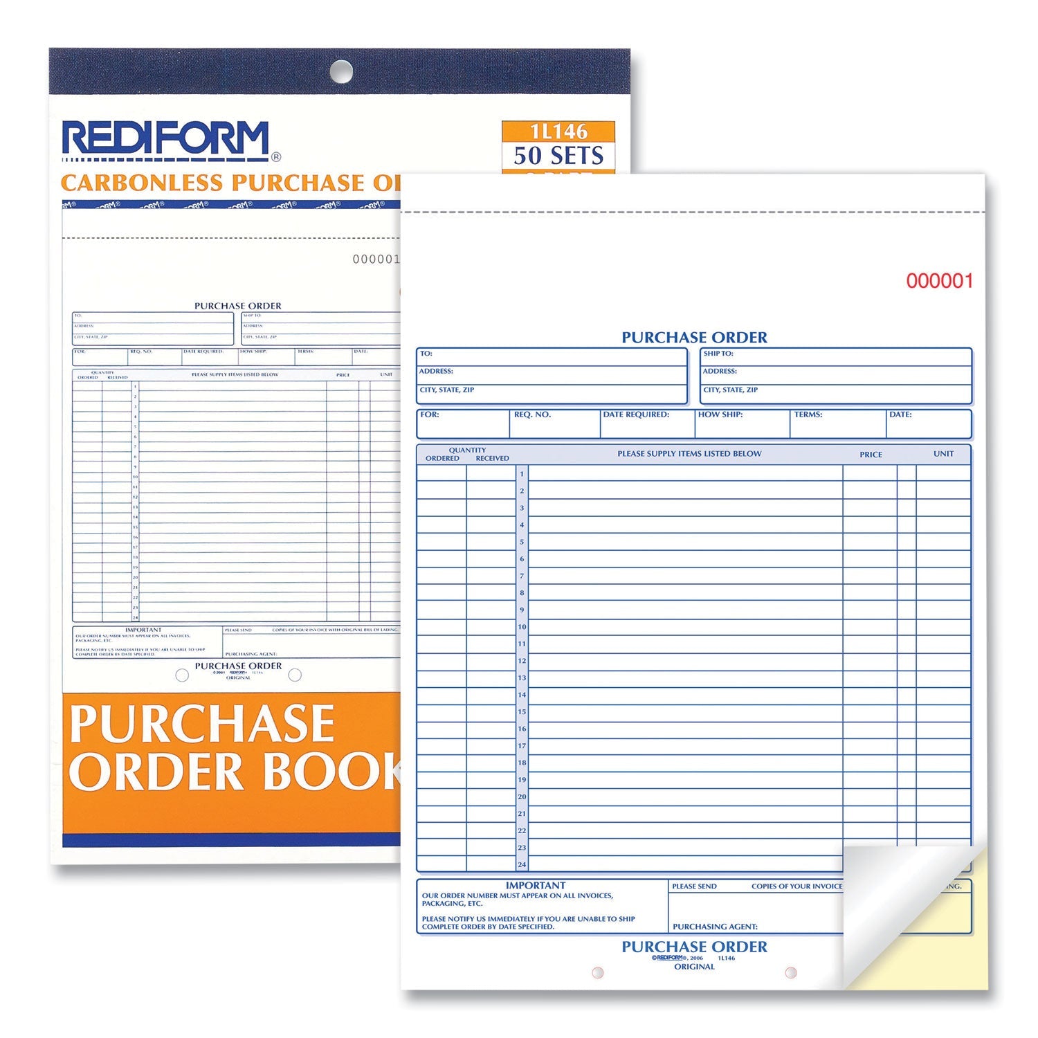 - Purchase Order Book, 17 Lines, Two-Part Carbonless, 8.5 x 11, 50 Forms Total