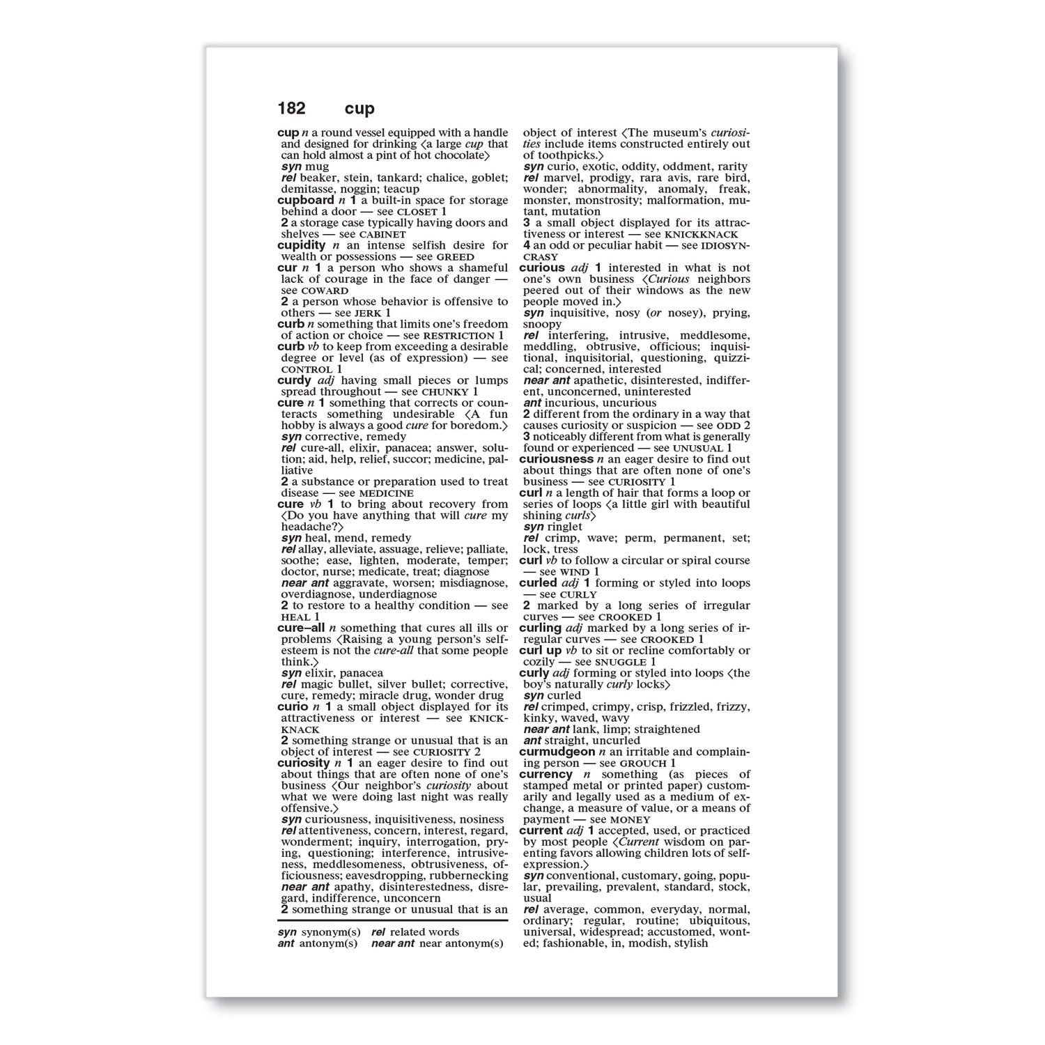 An all-purpose thesaurus at an attractive price. More than 150,000 word choices, including synonyms, antonyms, related words and idiomatic phrases. Abundant usage examples. Alphabetically organized for ease of use. Brief definitions describe shared meanings.
