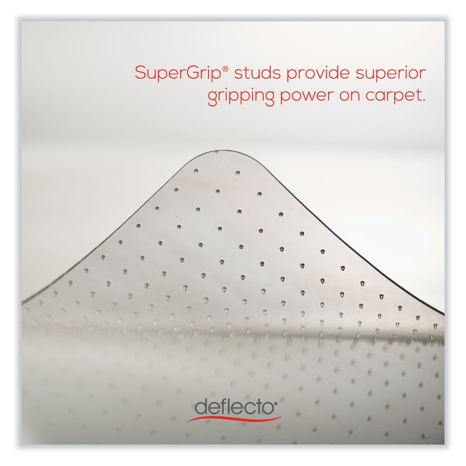 Lightweight, durable performance for moderate use on carpets up to 0.38" thick. Easy-glide rolling surface provides effortless chair movement. Studded design secures mat from moving while protecting carpet from caster wear, spills and heavy traffic. Free and ClearŒ¬ non-phthalate, non-cadmium formula promotes a healthy work environment while offering exceptional clarity and durability. Smooth beveled edge for easy carpet-to-mat transition.