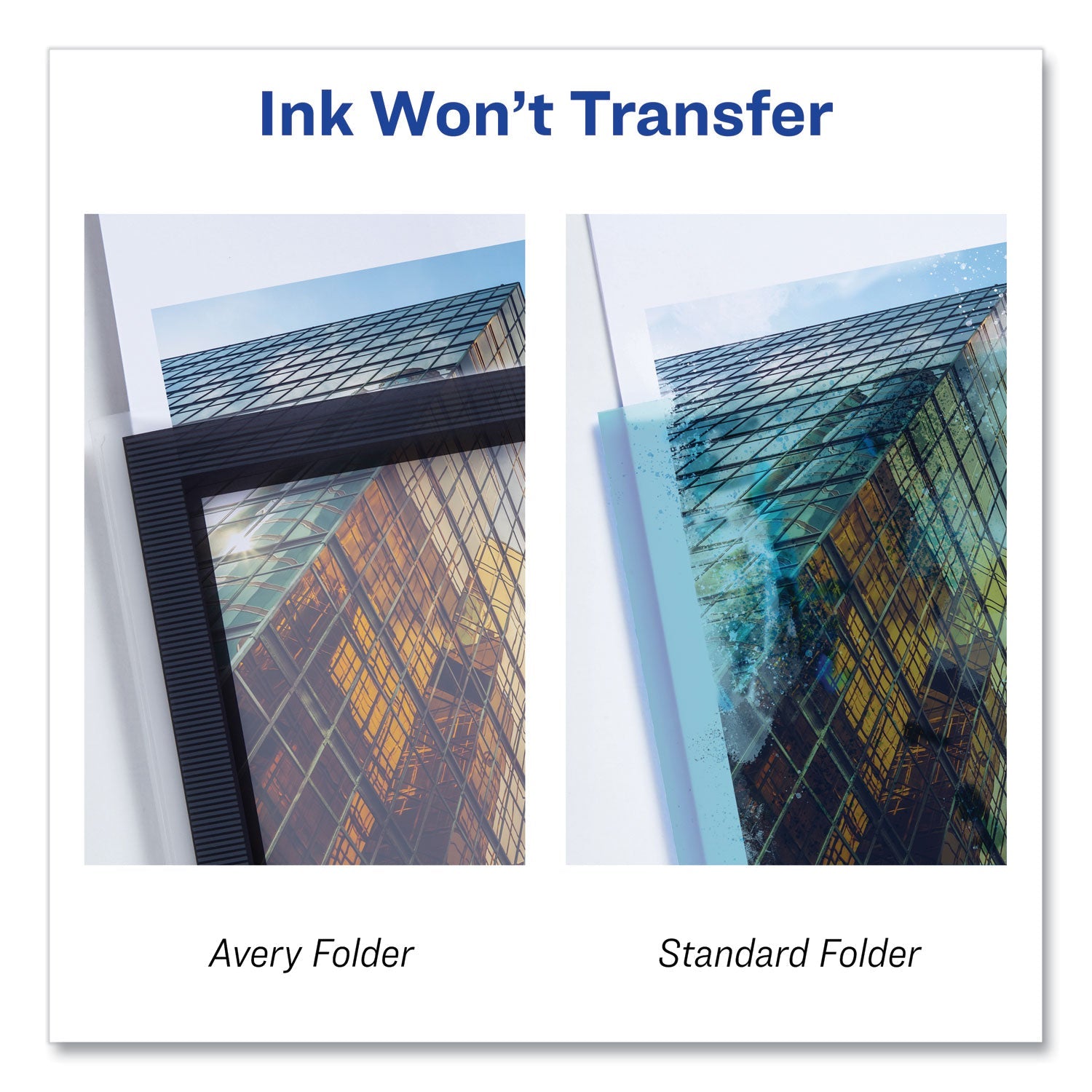 Stylish graphic border on the cover helps make your presentations look great. Clear cover allows you to easily customize your binder using free, easy-to-use designs and templates. Durable, lightweight and easy to carry. Non-stick poly material prevents ink and toner transfer.