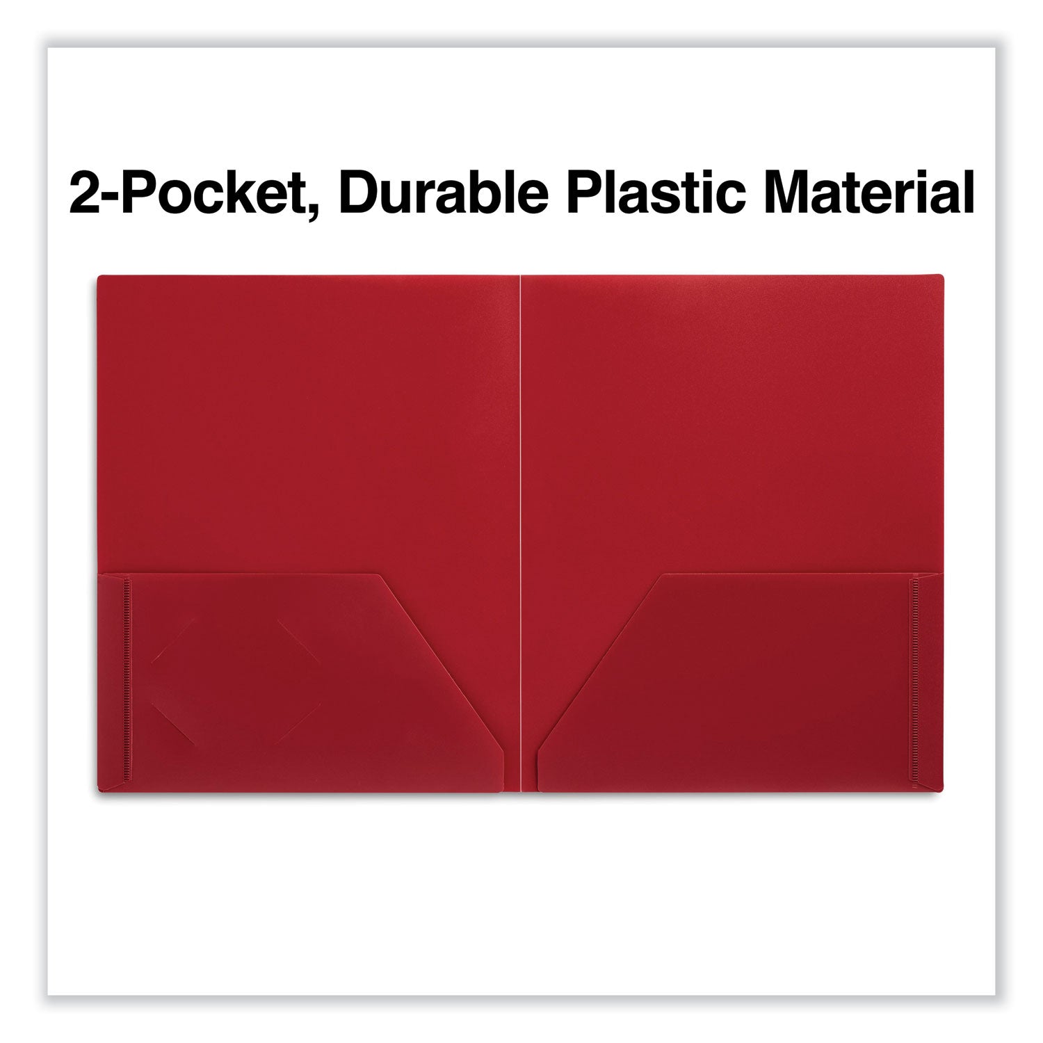 - Two-Pocket Plastic Folders, 100-Sheet Capacity, 11 x 8.5, Red, 10/Pack
