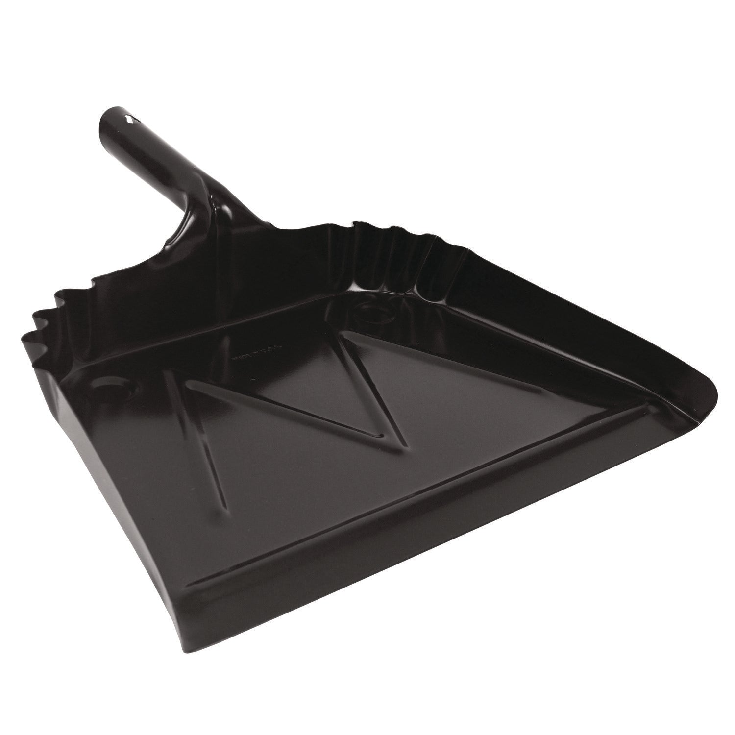 - Heavy-Duty Commercial Dust Pan, 16 x 15.5, 5.38" Handle, 20-Gauge Steel, Black