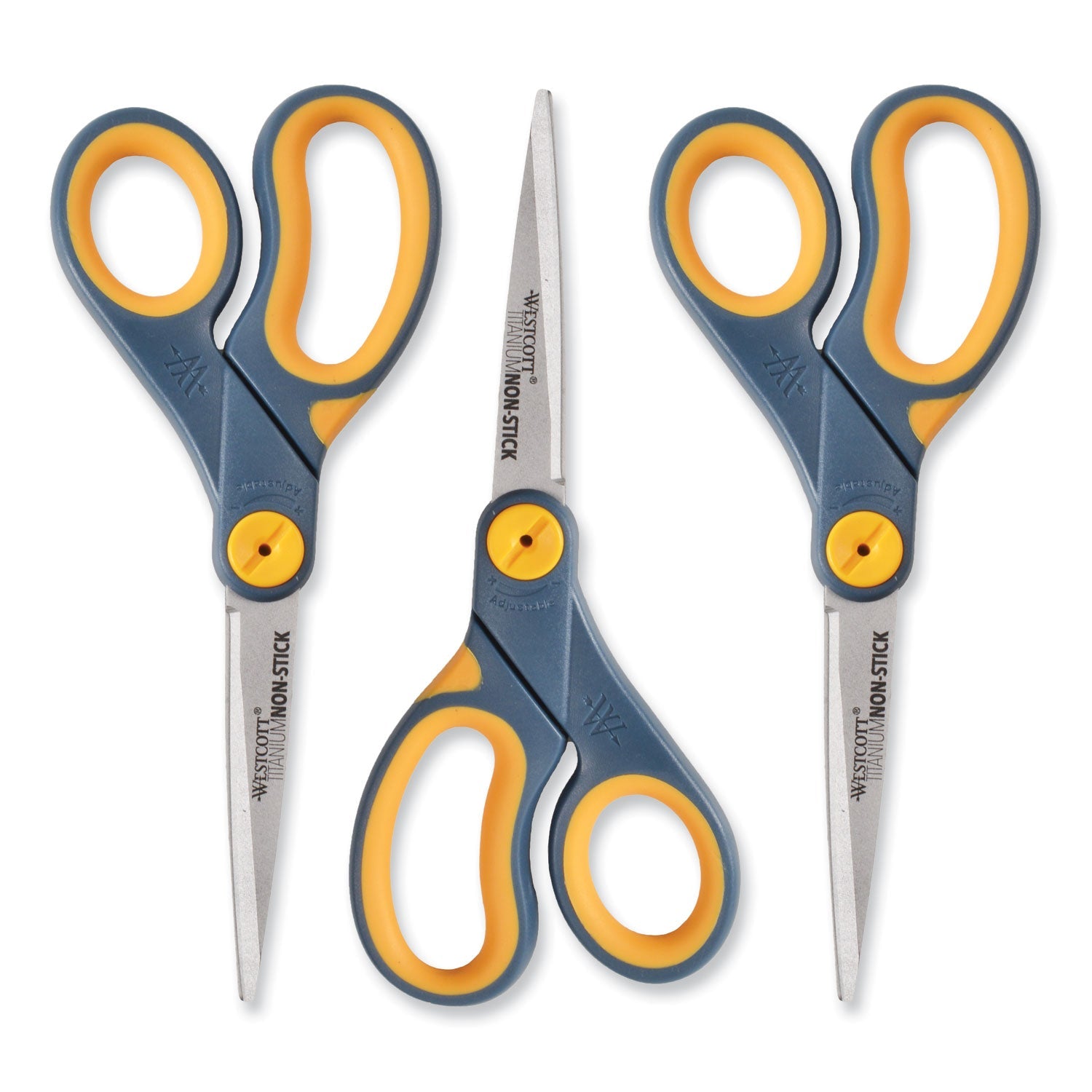 - Non-Stick Titanium Bonded Scissors, 8" Long, 3.25" Cut Length, Straight Gray/Yellow Handle, 3/Pack