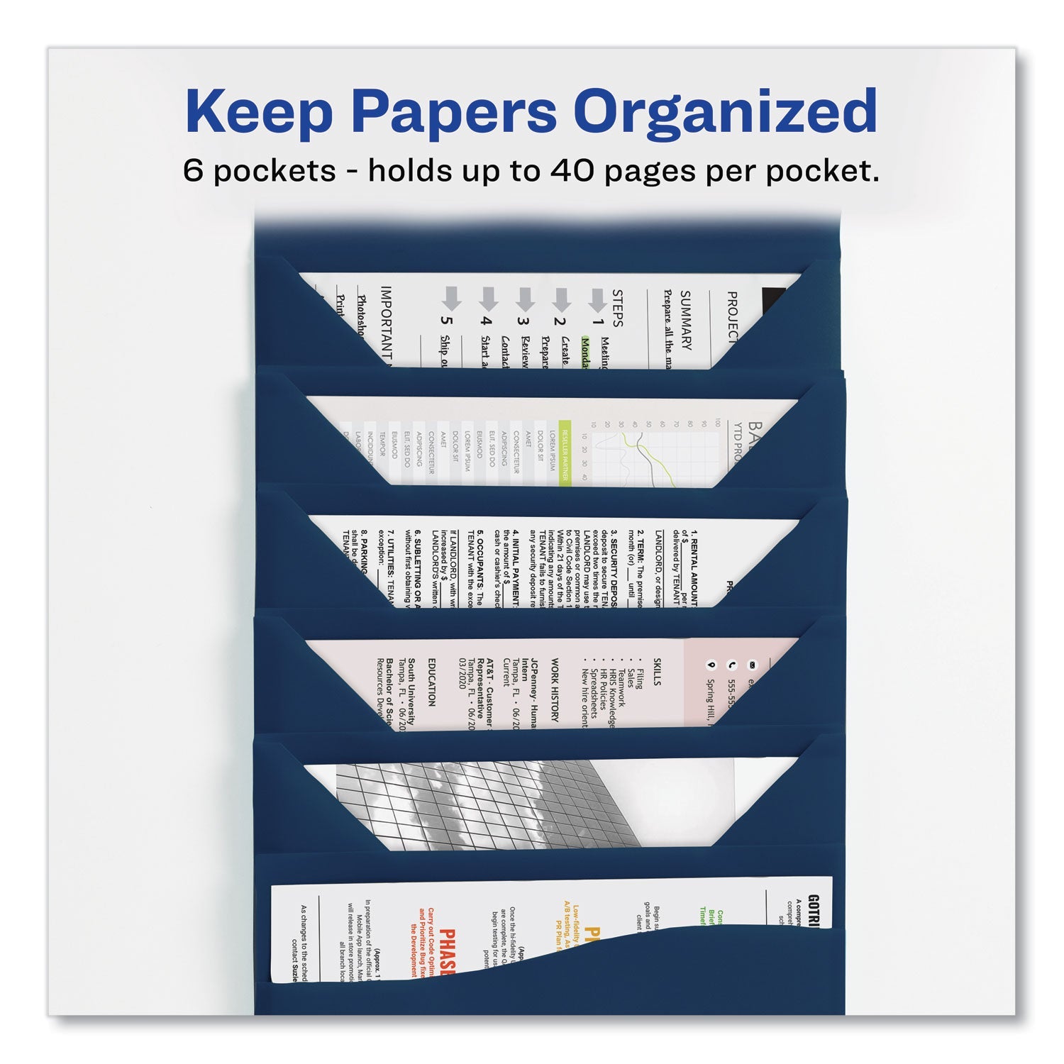- Slide and View Expanding File, 6 Sections, Hook/Loop Closure, Letter Size, Navy Blue
