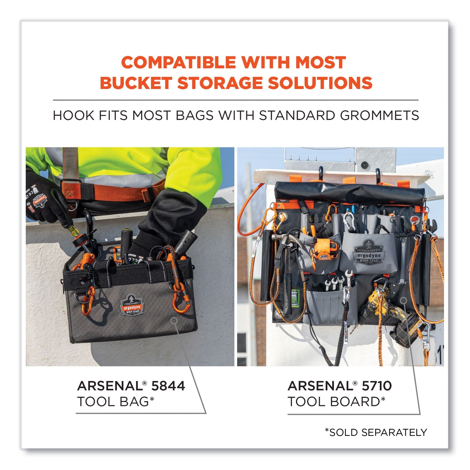 - Hook fits standard grommets, including those on the Arsenal 5710 Bucket Truck Tool Board and 5844 Bucket Truck Tool Bag.