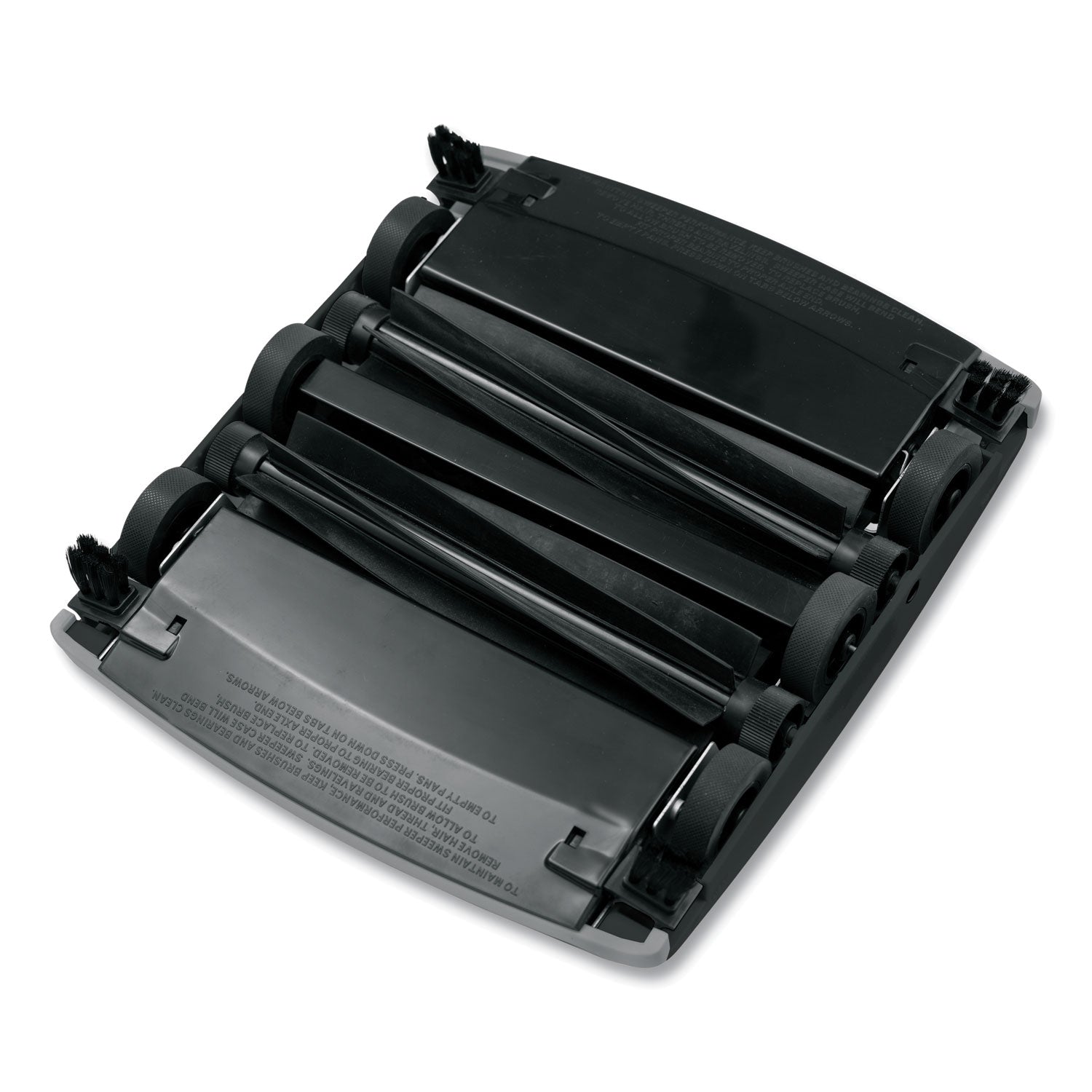 Nonmarking rubber sweep blades effectively pick up dry and semi-liquid debris from wood, tile, vinyl and carpet flooring. Four corner brushes push dirt and dust from the edges toward the blades. Low-profile design; wide sweep path.