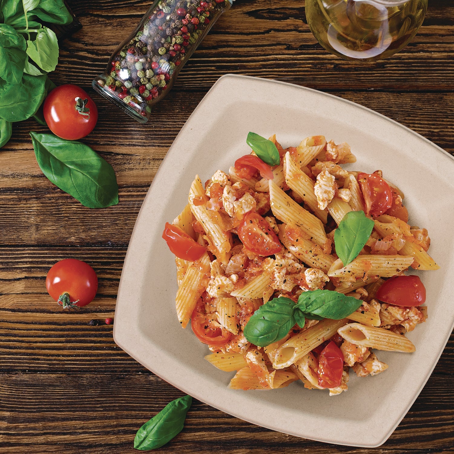 Stylish and strong, this dinnerware is made with a grease-resistant, PFAS-free formula.