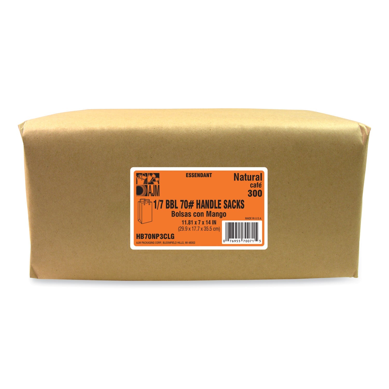- Handle Bag, 12" x 7" x 14", Brown, 300/Bundle
