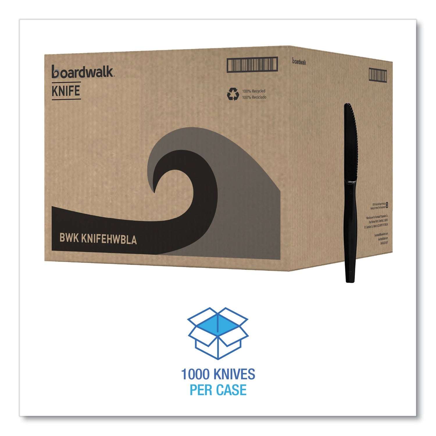 - Heavyweight Polystyrene Cutlery, Knife, Black, 1000/Carton