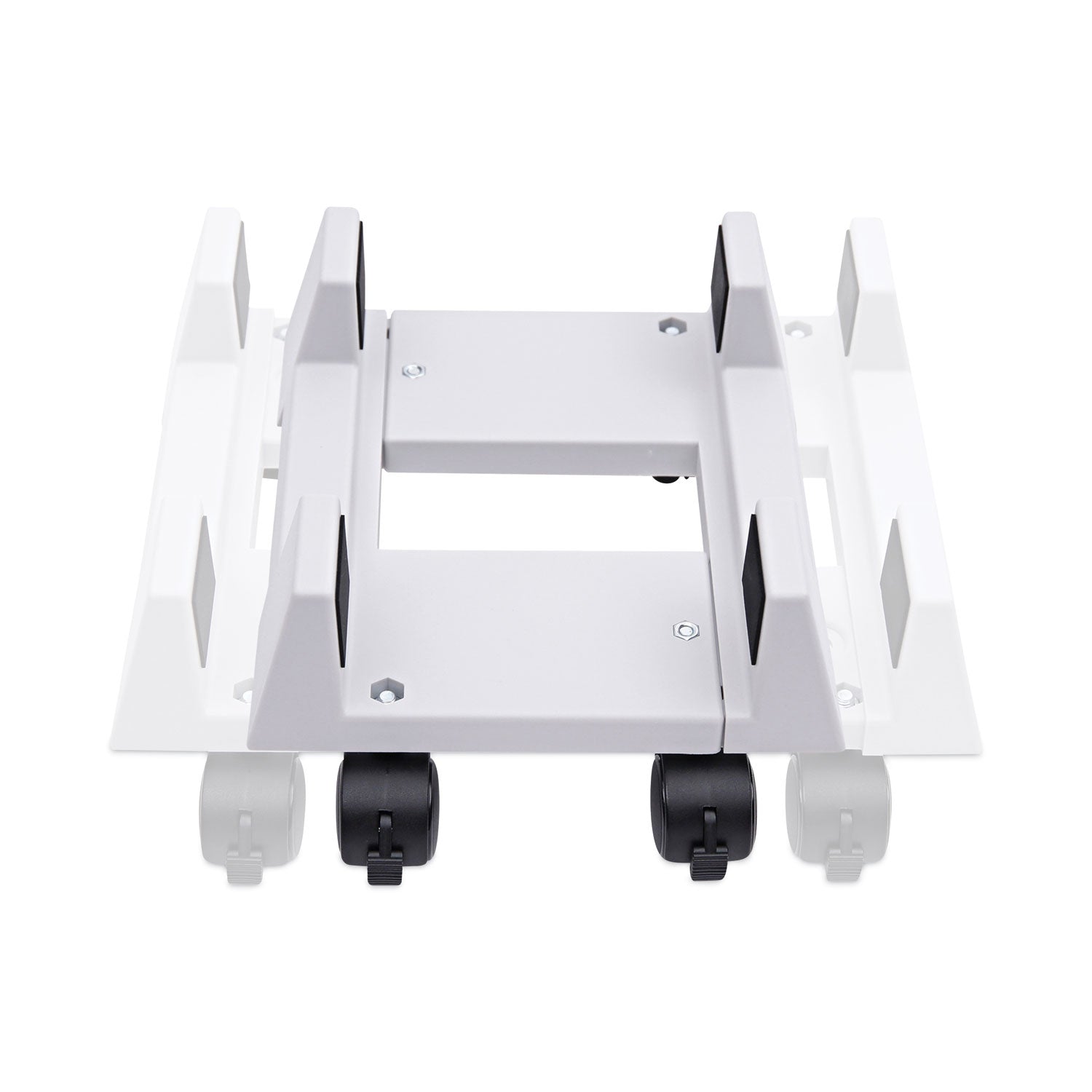Stand is constructed with non-skid padding that securely holds a CPU in place. The adjustable base expands from 6.14äó� to 10.24äó� in order to accommodate a wide range of CPU sizes. Built with durable construction to ensure strength and stability for the most fragile equipment. The base contains four wheels, two locking casters and two swivel casters for mobility or stationary use.