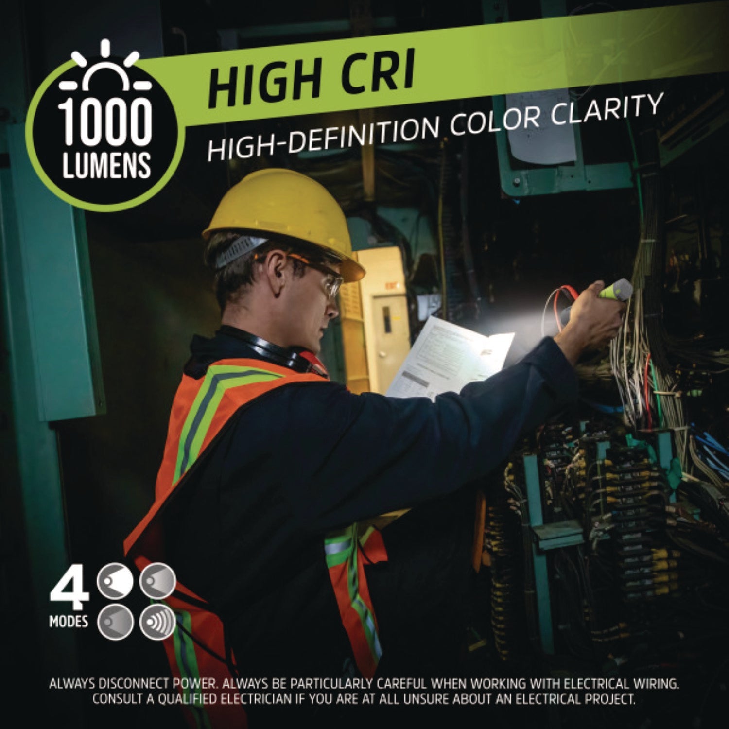 Pro Series Handheld High CRI Flashlight, Rechargeable Lithium Ion/6 AAA Batteries Included, Gray/Green