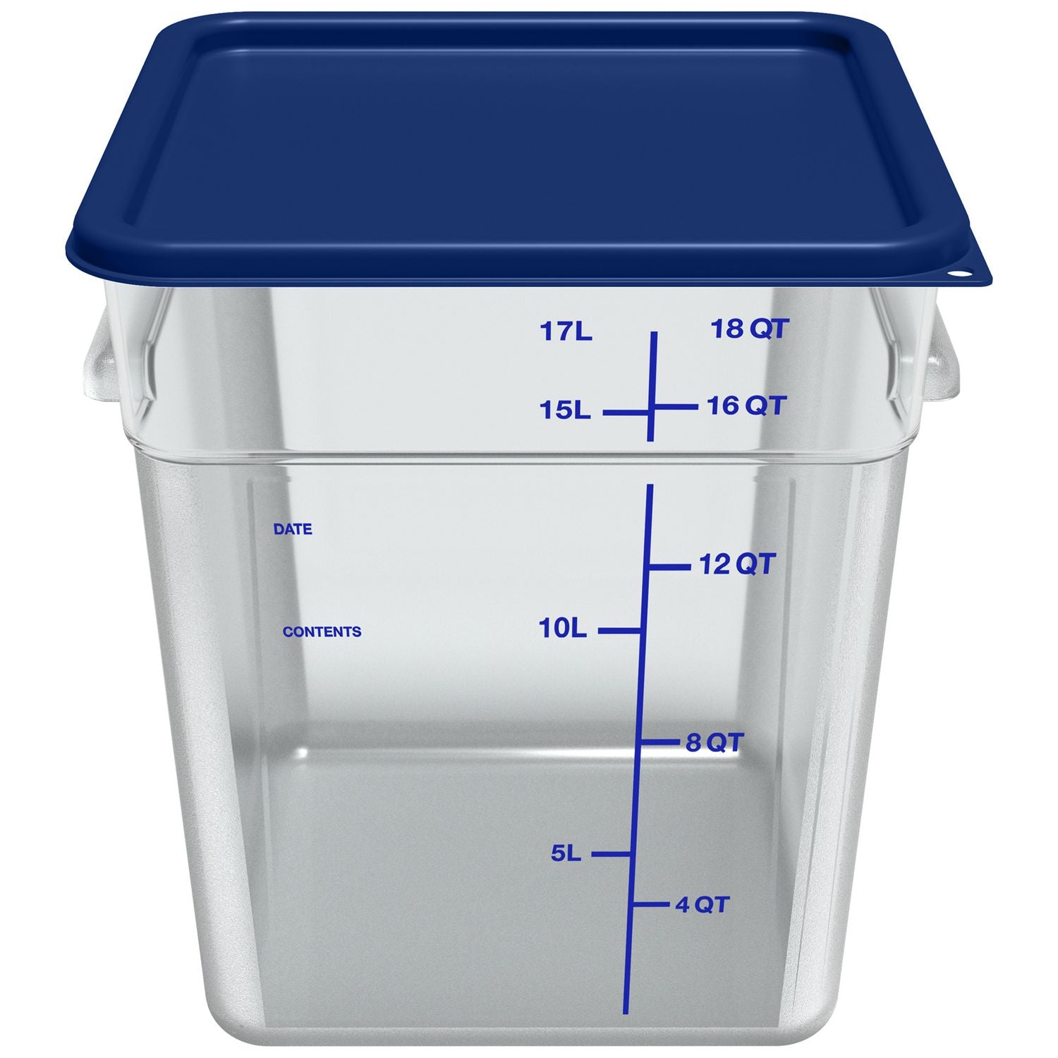 - Squares Polycarbonate Food Storage Container, 18 qt, 11 13 x 11.13 x 12.58, Clear, Plastic