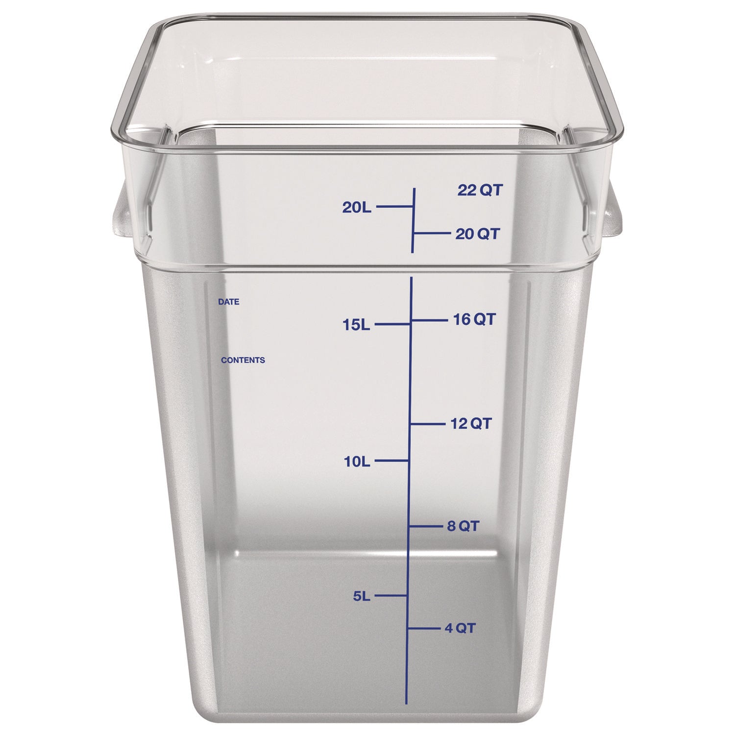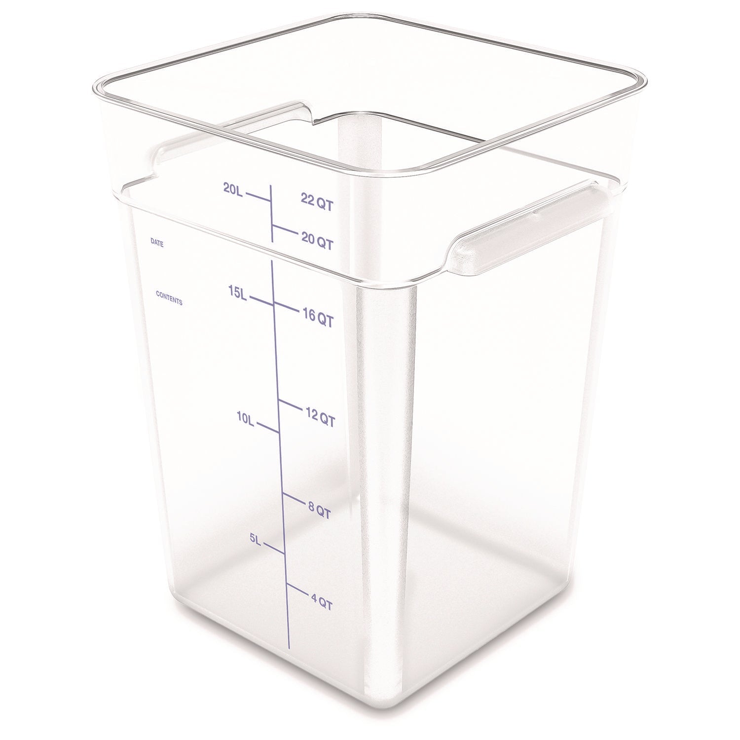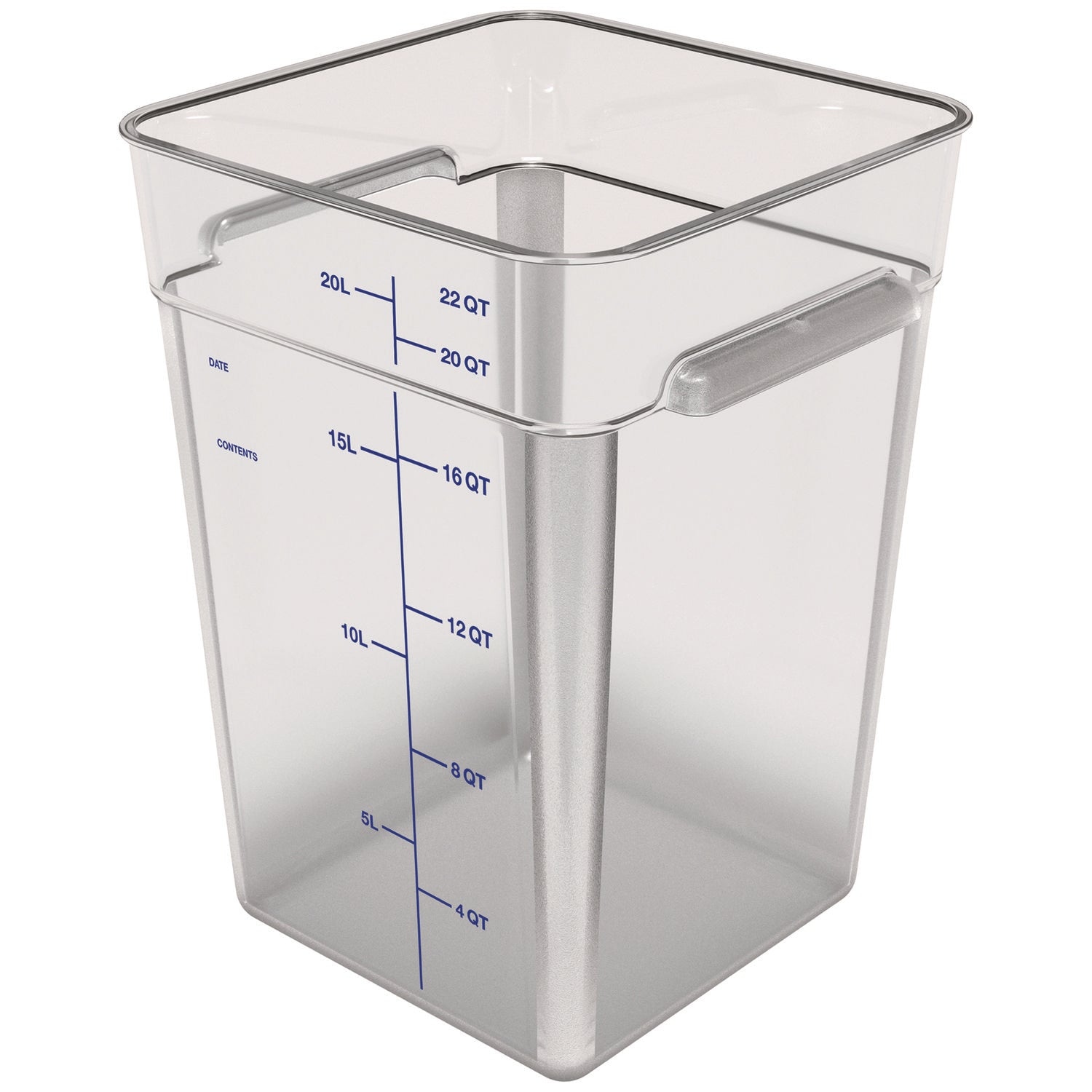 Squares Polycarbonate Food Storage Container, 22 qt, 11 13 x 11.13 x 15.72, Clear, Plastic