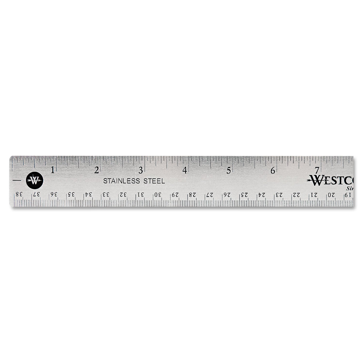 - Stainless Steel Office Ruler With Non Slip Cork Base, Standard/Metric, 15" Long