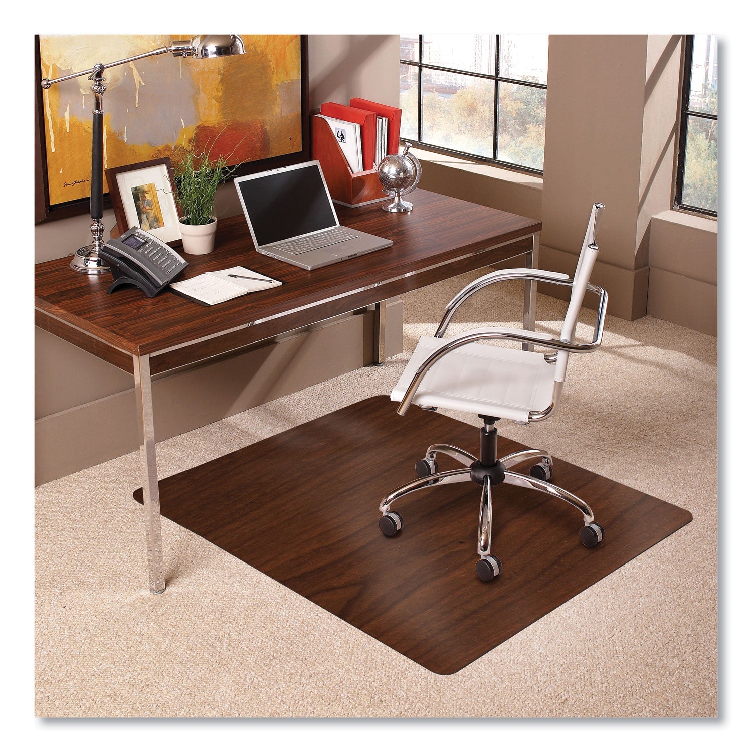 Protects laminate, wood, tile, carpet and other floor surfaces from caster wear and tear. Crafted with a durable decorative top layer. Instantly add style to your workspace with the beauty of a designer chair mat. Rectangular shape provides a large surface area for maximum mobility.