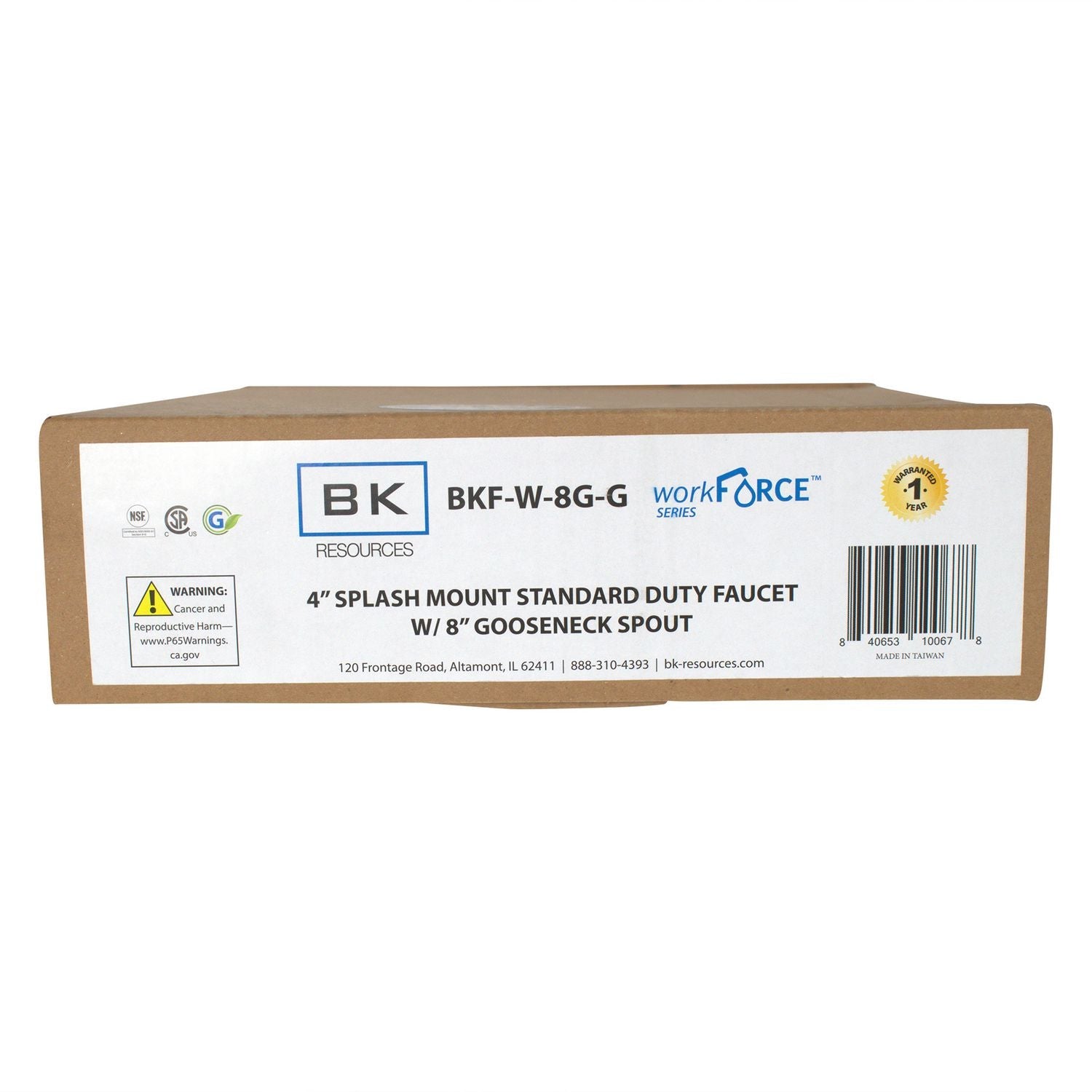 - WorkForce Standard Duty Faucet, 12.38" Height/8" Reach, Chrome-Plated Brass